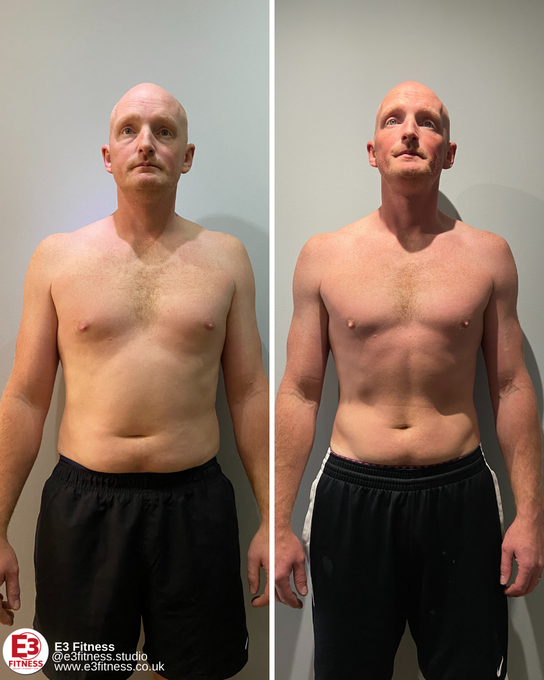 “I started with David just before Christmas, then again properly beginning of March (Covid shutdown). My best mate introduced me to him. My goals when I started at E3 were to generally tone up, without weight loss, as I'm happy with my weight. I also wanted to improve my level of fitness.